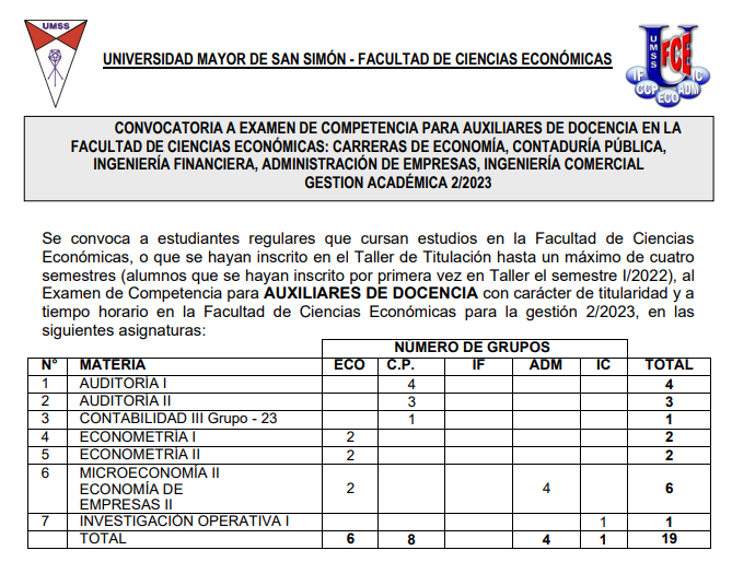 CONVOCATORIA INTERNA PARA ESTUDIANTES INSCRITOS EN LA MATERIA DE TALLER DE TITULACIÓN - CARRERA ECONOMÍA